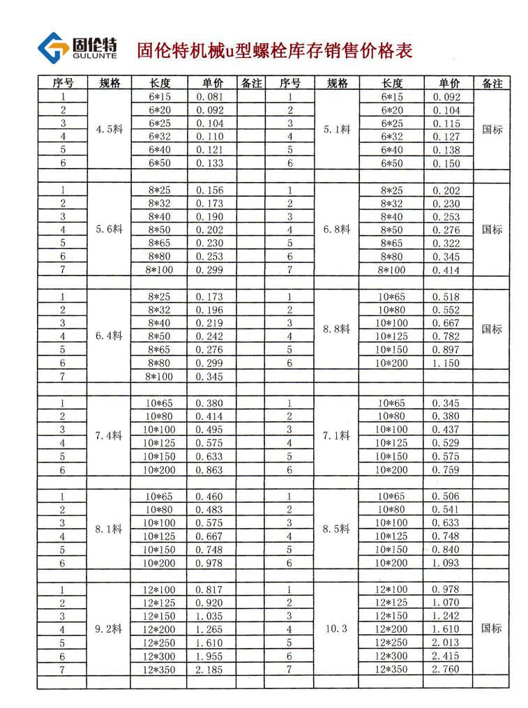 u型螺栓廠家價(jià)格表